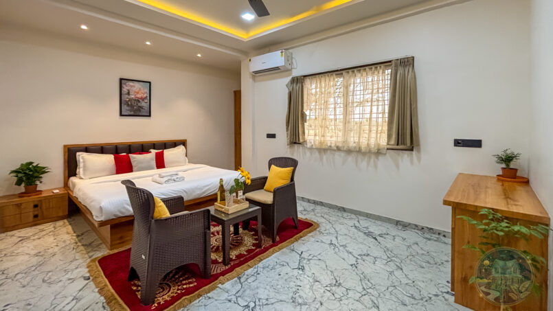 Mohagany Villa is a serene nature retreat nestled within lush Mahogany plantations, known for their high oxygen output and naturally cooler surroundings (2–3°C lower temperature). The dense greenery creates a peaceful, pollution-free environment ideal for relaxation, meditation, and family getaways.